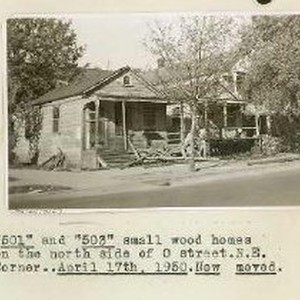 Typed on binder page "501 and 503 small wood homes on teh north side of O street.N.E. Corner..April 17th, 1950. Now moved."