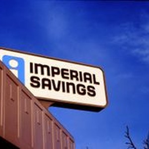 Slide, color transparency: The Imperial Savings Bank sign on the corner of Bodega Avenue and Main Street taken February, 1977.