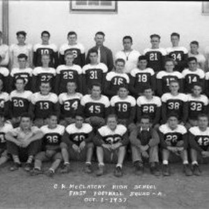 SERIES: 2 Photos - C. K. McClatchy High School 1937 First Football Squads Teams A. & B. Oct. 1,1937