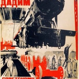 A poster dedicated to the reconstruction of the Soviet transportation system. Captions read, "Za rekonstruktsiiu transporta! Dadim sovetskomu transportu samye moshchnye parovozy / За реконструкцию транспорта! Дадим советскому транспорту самые мощные паровозы", meaning, "For the reconstruction of the transport! Let's provide the Soviet transport with most powerful locomotives". [Description English/roman)]