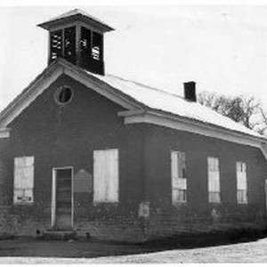 Caption reads: "Money raised at a dance in the billiard saloon of the N. R. Prince Building in Altaville built this red-brick schoohouse in the Calaveras County community in 1858. It was used as a school until 1950."