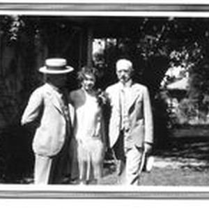 Photo--black and white:L to R: Charles R. Myers, Cornelia Myers his daughter and Chester Myers, Bunni's grandfather. about 1920s. Charles Myers was the owner of Sebastopol business Art Point Studios from 1917 to 1966.