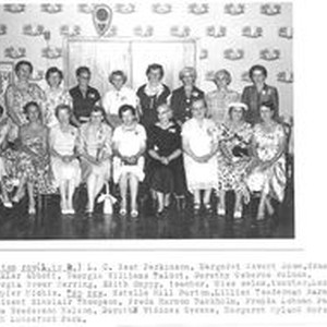 Photo--black and white: Ladies of the Analy Union High School 1925 class reunion possibly in 1955. Identification on attached typed caption include: Parkinson, L.C. Best; Dowe, Margaret Covert; Abbott, Grace Winkler; Talbot, Georgia Williams; Bulman, Dorothy Osborne; Herring, Georgia Bower; Snypp, Edith; Selna, Miss; Michie, Lucille Dampier; Burton, Estelle Hill; Barnes, Lillian Teaderman; Thompson, Milicent Sinclair; Backholm, Freda Harmon; Farmer, Greida Lohman; Nelson, Emma Broderson; Greene, Dorothy Widdoes; Hurst, Margaret Myland; Park, Ruth Lunceford. Photography by Donald Duckhorn 232 Maple Avenue, Sebastopol