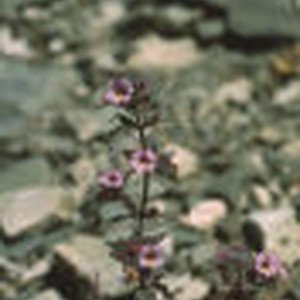 Close-up of tiny purple flowers on a rocky surface at Baldy Notch.