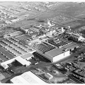 Aerial view looking south of the Campbell Soup Company plant at Franklin Blvd. and 47th Street in South Sacramento.