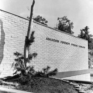 The photo caption printed in the Sacramento Bee on November 29, 1965 states: "Dedicated -- The $210,000 main branch Amador County Library was dedicated during a public ceremony this morning in Jackson. The facility, which contains 8,000 square feet of floor space and has a capacity to shelve 50,000 volumes, opened to the public after the dedication."