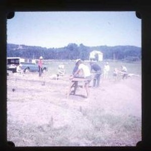 Slide of unidentified archaeologists at archaeological dig at Bolinas Bay