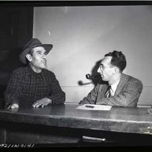 Torso murder - Suspect Victoriano Corrales seated at table with pipe-smoking detective. 11 of 18