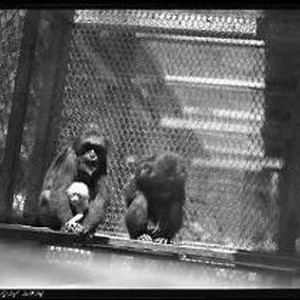 Zoo - Two monkeys in cage, one holds baby.