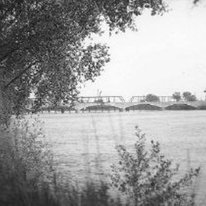 Distant view of the bridges across the American River at N. 16th and N. 12th Streets.