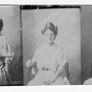 Three attached photos, two with woman and child and one of woman, probably Albert Harrington and his mother