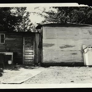 Photograph of Travis family house, typical faculty house for the school, [s.d.]. "Lindberg Travis family house. Dr. Mallory and school raised money for them to build new house. House didn't have floors or running water" -- back. [Description English/roman)]