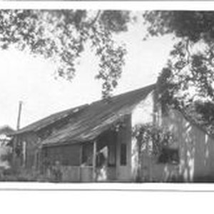 Photo--black and white: The farm of William (1856-1932) and Leona (1855-1931) Rosebrook in Sebastopol circa 1920. Seen is possibly several of the out buildings on the farm.