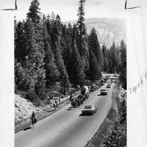 The 27th annual Highway 50 Wagon Train moves westbound along with traffic.