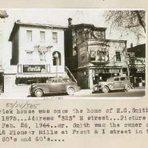 View of 323 M Steet. It was the home of H.G.Smith in 1875. He was the owner of the old Pioneer Mills at Front & I Streets in the 1850's & 1860's. In front of the home is the El Gallito Cafe, a hotel and Sportsman Bait.