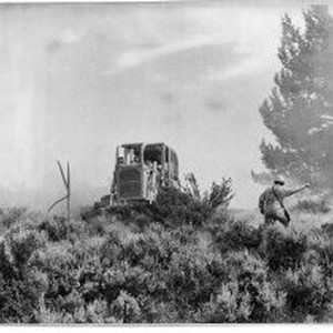 The photo caption printed in the Sacramento Bee on July, 7, 1976 states: "A bulldozer cuts a swath through brush and grass to create a firebreak under direction of a fire fighter carrying a walkie-talkie, above, . . . '