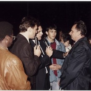 A photograph of evangelists praying for the people. Two men are holding microphones and one of them is praying for a person standing in front of hime. [Description English/roman)] Fotografija evangelizatora koji mole za ljude. Dvojica muškaraca drže mikrofone i jedan od njih moli za čovjeka koji stoji ispred njega. [Description (original non-English/roman language/script)]