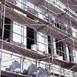Old Sacramento. View of the Pacific Stables building on the corner of Second and L Streets. This view is of the site during reconstruction.
