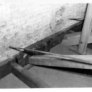 Photographs from Petaluma Adobe Report. Close-up of restoration work bracing.