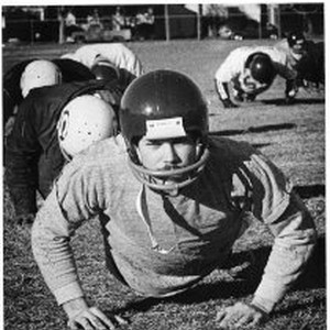 John Cabrera and others wearing football helmets and exercise wear do push ups to prepare for the Pig Bowl at Hughes Stadium in Sacramento.