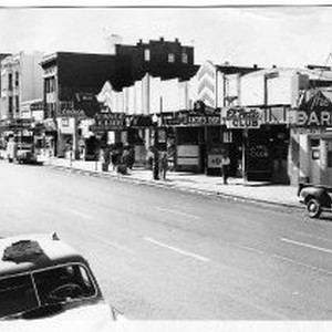 Copy Print: Street scene along K Street between 4th and 5th Streets before redevelopment showing the saloons, hotels, and markets on the southside of the street looking east.