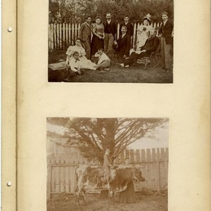 Dated August 6, 1893 on another print of this photograph that is in MS 096 Sinsheimer Family Correspondence. Standing second from left is Nettie Sinsheimer (?). Seated in rocking chair is Aron Sinsheimer.