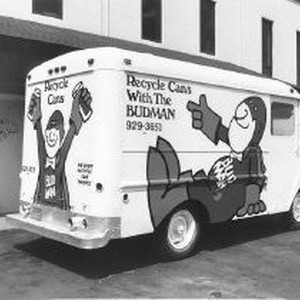 River City Recycling truck at the Markstein Beverage Company, advertising Budweiser.