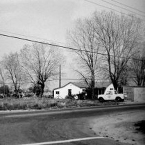Distant view of a meter house on the street.