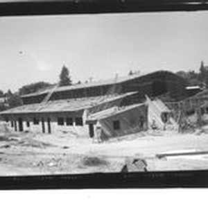 Photo--black and white: Sebastopol's Veteran's Memorial building during construction circa 1950s. Located at 282 High Street.