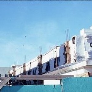 Old Sacramento. View of the Pacific Stables building on the corner of Second and L Streets. This view is of the site during reconstruction.