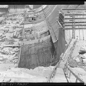 SERIES - Five views identified on the original container as "Folsom Dam" and "Bethlehem Pac. Coast Steel". These are views of the construction of the dam and are dated 6-25-54.