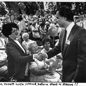 Governor Edmund G. Brown, Jr., shaking hands with people at the start of a rally.