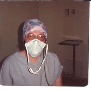 Photo--Debbie Henning, scrub tech at Palm Drive Hospital, Sebastopol, California, 1976