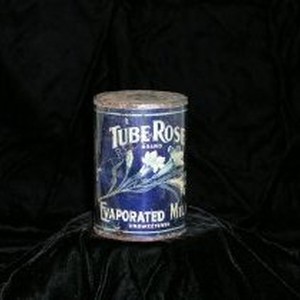 Can "Tuberose Evaporated Milk." Manufactured by Mebius & Drescher Co.