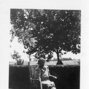 SERIES. Antoinette reclines in her rocker in the yard of the ranch house.