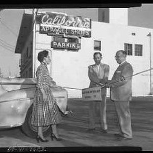 SERIES - Two views of the Clarence Azevedo at the opening of the parking lot for the California Apparel shop in Oak Park. The shop is located at 2930 35th Street; no address is given for the parking lot.