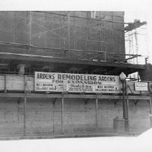 Exterior view of Arden's, a women's apparel store undergoing remodeling in 1950. The store is on the southeast corner of 7th and K Streets.