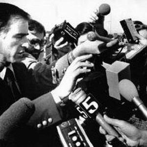 Governor Edmund G. Brown, Jr. tries to help a cameraman who was being crushed by a crowd of journalists after Brown arrived back in Sacramento.