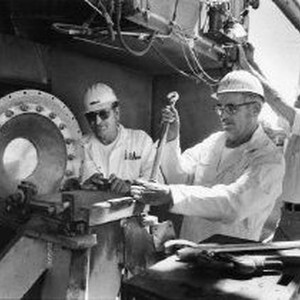 "Aerojet Liquid Rocket Co. - Foil Borne Propulsor Facility; Orville Oie, Jim Denney, Ed Classon work on PHM Test Facility"