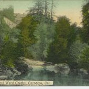 Postcard--photo hand colored: Austin and Ward Creeks, Cazadero, California. Handwritten message on back postmarked 1911. This postcard was made for the Cazadero Store, General Merchancise in Cazadero. Background: Austin creek named after pioneer settler Henry Austin who settled near the mouth of the creek (east bank) in 1856.