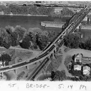 Aerial View. Traffic crossing I Street Bridge, between Sacramento and West Sacramento, taken at roughly 5:14 pm.