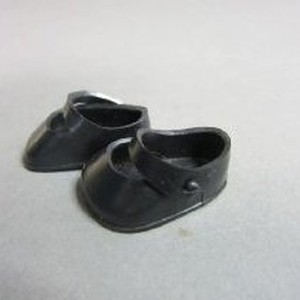 Pair of black plastic doll shoes.