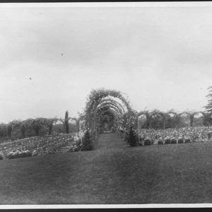 An early view of the rose garden. The bushes are still small and the trellises are not yet completely overgrown.