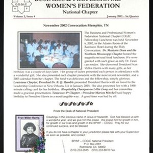 C.O.G.I.C. Business & professional women's federation. National chapter, vol. 1, no. 4 (2003 January). [Description English/roman)]