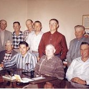 Photo--color: Sebastopol Co-op Cannery board and manager meeting 1962. Attendees: Joe Cordoza, Bill Overstreet, Ezra ?, Bill Marshall, Mel Davis, Joe Perry, Stan Rossi, Wally Blackney, Tony Bondi, Bill Roberts, Bill Klotz.