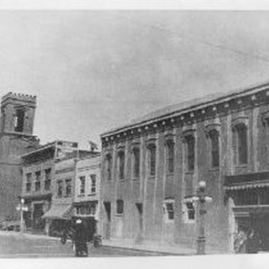 Copy Print: Exterior view of the Post Office building at 7th and K Streets. View is looking north at the east side of 6th Street from J Street. The First Methodist Episcopal Church, South at 7th and J Streets is down the street.