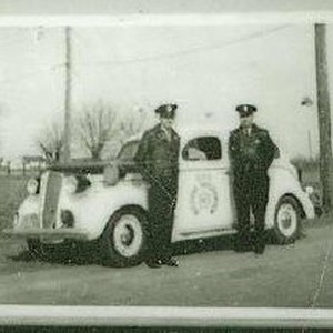 SERIES. Two Sacramento police officers pose beside a white squad car used for traffic accident investigations. One is probably Jim Hicks.