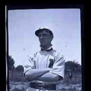 An unidentified man posed standing in a field, wearing a baseball uniform with the letter "N" on his shirt.
