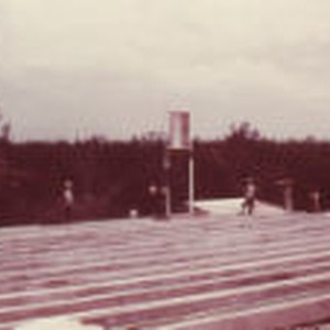 Construction workers atop of water pumping plant.