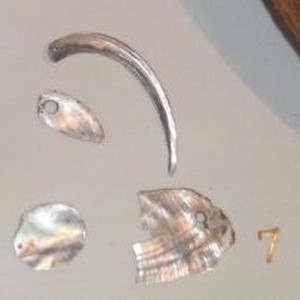 Collection of abalone shell pendants and other pieces drilled to be used in jewelry.
